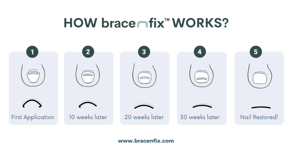 Bracenfix™ is a revolutionary non-surgical, pain-free way to restore the natural shape of the nail as it grows.