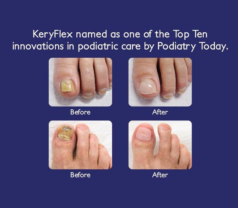 KeryFlex is a cosmetic, painless, in-clinic podiatry treatment that uses a flexible, durable resin to restore the appearance of damaged, fungal, or discolored toenails in under 30 minutes. It is non-porous, allows natural nail growth, and lasts 6–8 weeks. It is not a cure for fungus, but rather a temporary, natural-looking covering applied only by trained professionals.
